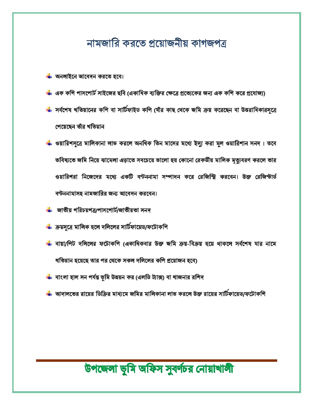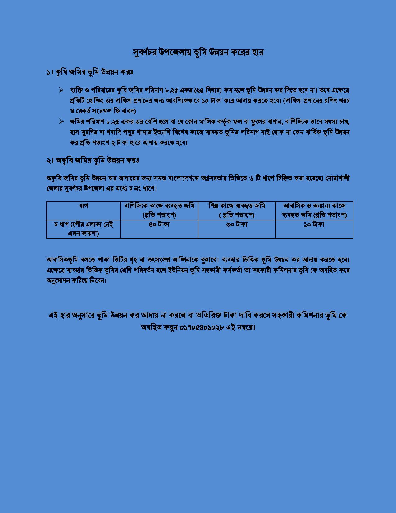 উপজেলা ভূমি অফিস সুবর্ণচর এর সিটিজেন চার্টার